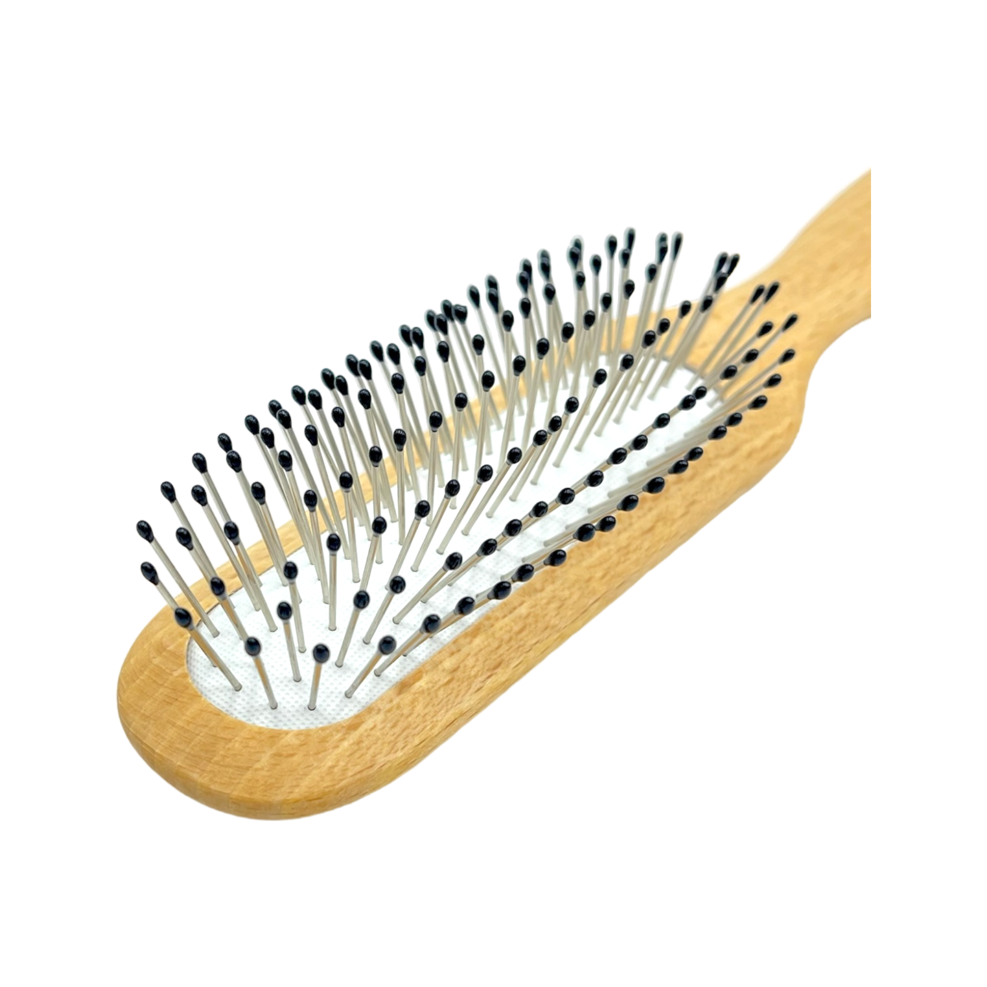 Dural Beech Wood rubber cushion hair brush with steel pins and plastic ball tips